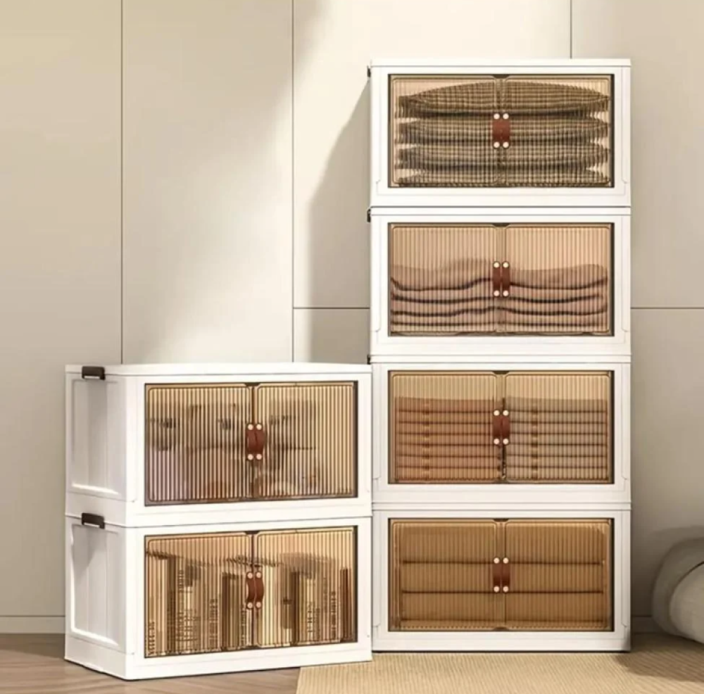 Storage boxes with lids and wheels for easy movement and you can close the wheels with one click